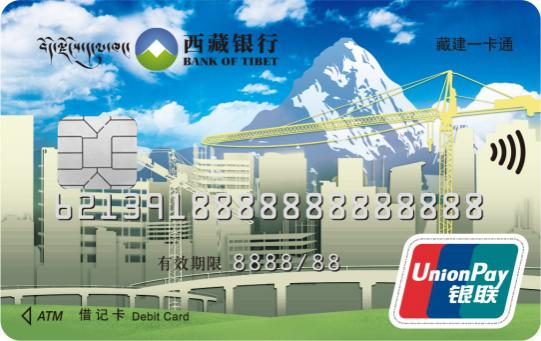 藏建一卡通為純芯片借記卡,面向建筑工人代發工資客戶發行,具備我行普通珠峰IC借記卡的全部功能。
