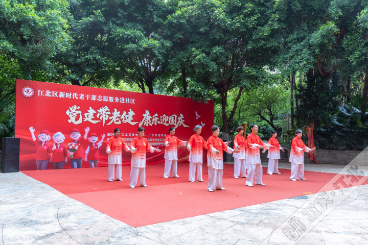 9月(yue)28日,“黨建(jian)帶老(lao)(lao)健(jian) 康樂迎國慶”新時代(dai)老(lao)(lao)干(gan)部志愿服務進社區(qu)活動(dong)在江(jiang)北區(qu)觀音橋街道九鼎花園舉辦。