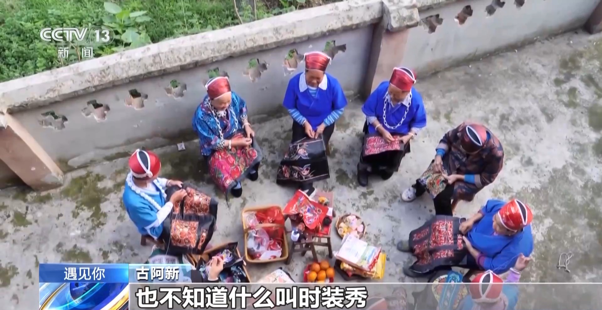 古阿新:回到家鄉后,發現之前那些幫媽媽繡花的阿姨,她們不知道什么叫時裝周,也不知道什么叫時裝秀。但是她們繡的花很漂亮,很多明星穿過,很多時裝周用過。我想你們走不出大山,看不了時裝周,看不了時裝秀,那我就把時裝周、時裝秀搬到家鄉來。我們就把那些模特請來,穿上我們的服飾,在我們村里面走秀。