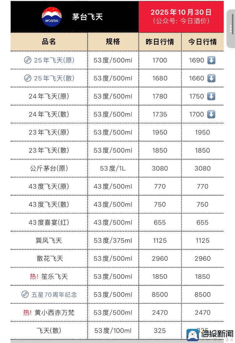 貴(gui)州茅(mao)(mao)臺飛天茅(mao)(mao)臺價(jia)(jia)格成為(wei)行業風向(xiang)標,10月30日“今日酒價(jia)(jia)”數(shu)據顯示,53度(du)飛天茅(mao)(mao)臺散瓶(ping)批價(jia)(jia)跌(die)(die)至(zhi)1660元(yuan)/瓶(ping),較前日再度(du)下跌(die)(die)20元(yuan)/瓶(ping),再次刷新上市(shi)以來新低(di)價(jia)(jia),市(shi)場(chang)擔憂后續或(huo)即將(jiang)到達1499元(yuan)/瓶(ping)官方(fang)指導(dao)價(jia)(jia)。盡管華創證券提及(ji)茅(mao)(mao)臺批價(jia)(jia)企穩在1800元(yuan)/瓶(ping)左(zuo)右,但(dan)終端(duan)實(shi)際成交價(jia)(jia)已形(xing)成明顯下行趨勢(shi),這一價(jia)(jia)格波動不僅影(ying)響(xiang)茅(mao)(mao)臺自身渠道信心,更對五糧液(ye)、瀘州老(lao)窖(jiao)等高端(duan)競品形(xing)成向(xiang)下擠(ji)壓。
