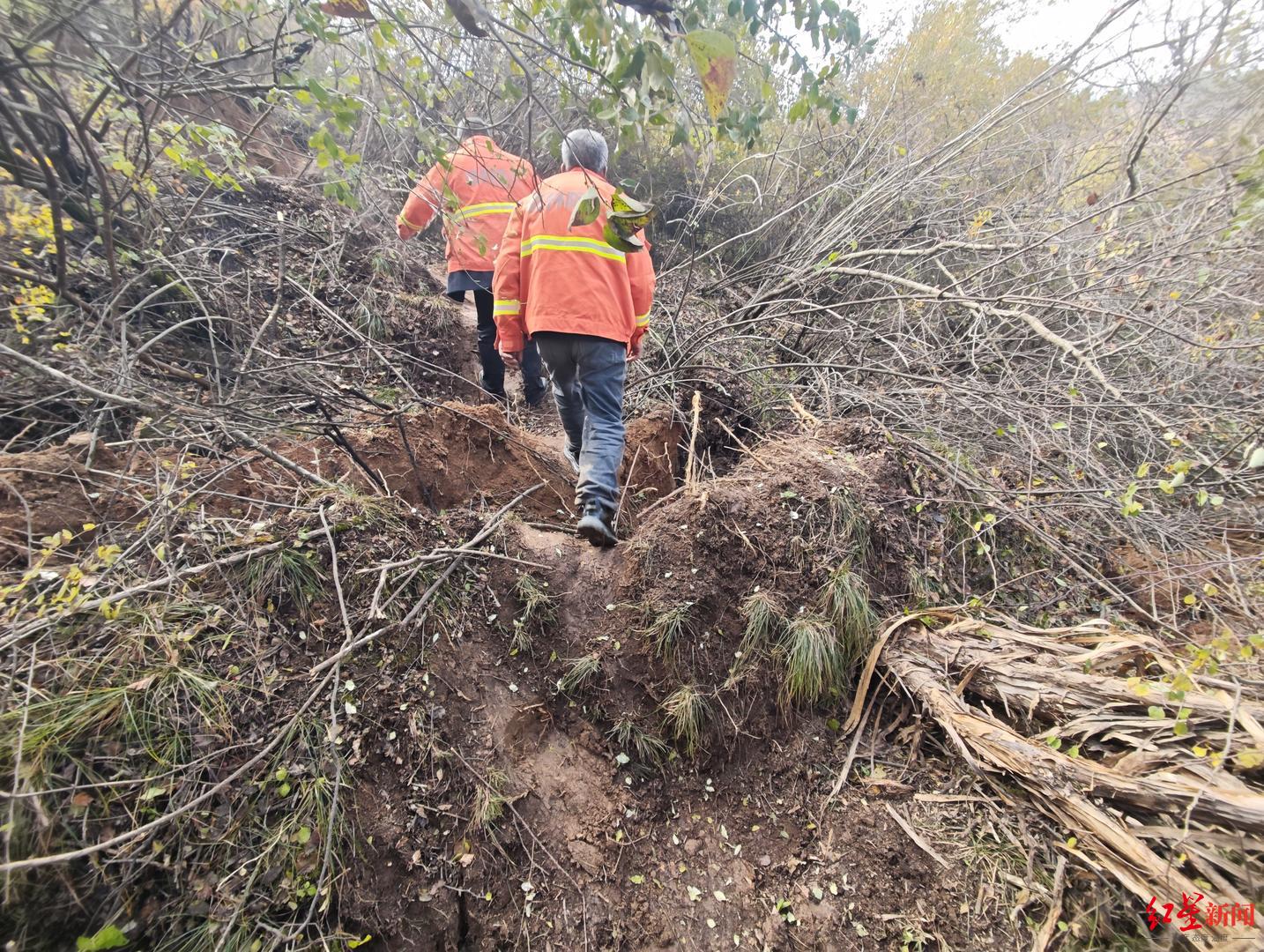 李某某失(shi)聯(lian)的第七天(tian),家屬們獲準進入(ru)搜尋現場。滑坡的山(shan)塬(yuan)在村(cun)子北面(mian),一(yi)眾(zhong)親戚從對面(mian)的山(shan)塬(yuan)先下到谷底,隨后越過兩三個小山(shan)頭,耗時將近40分鐘才抵(di)達(da)現場。