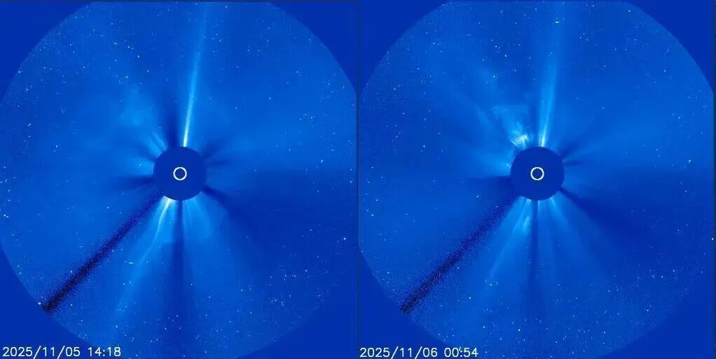 北京時間11月5日19時19分以及11月6日的清晨06時07分,太陽再次耀斑兩連爆,最大強度分別為M7.4和M8.6級,并伴隨較為明顯的日冕物質拋射(CME)。